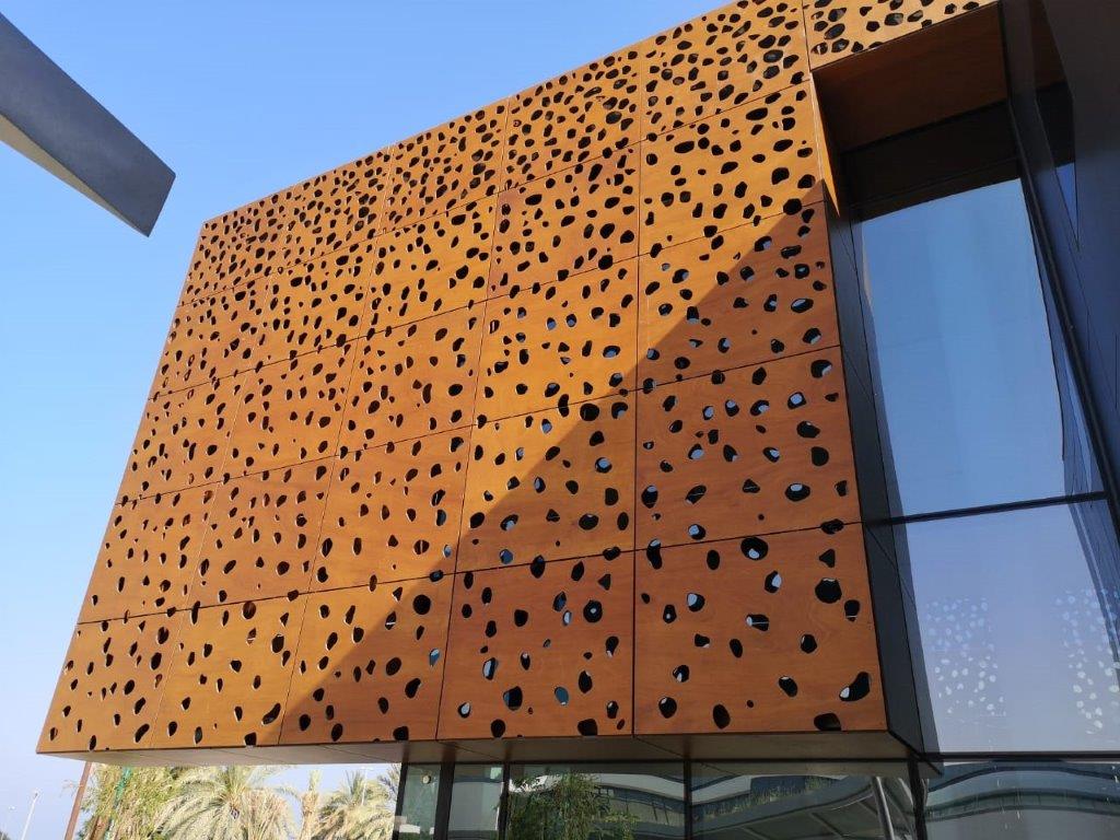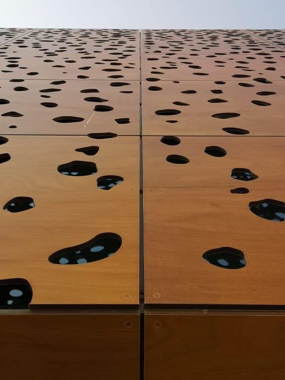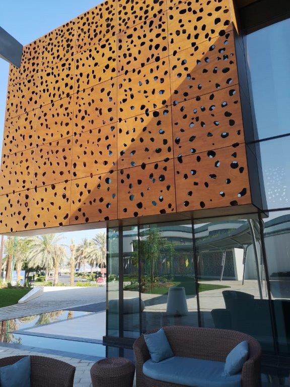 Obras International delivered high-performance façades using PARKLEX PRODEMA Naturclad WS in 12mm Rustik color, CNC perforated to enhance texture and visual depth. These wood composite panels provide durability, UV resistance, low maintenance, and sustainable performance, making them ideal for premium architectural applications.