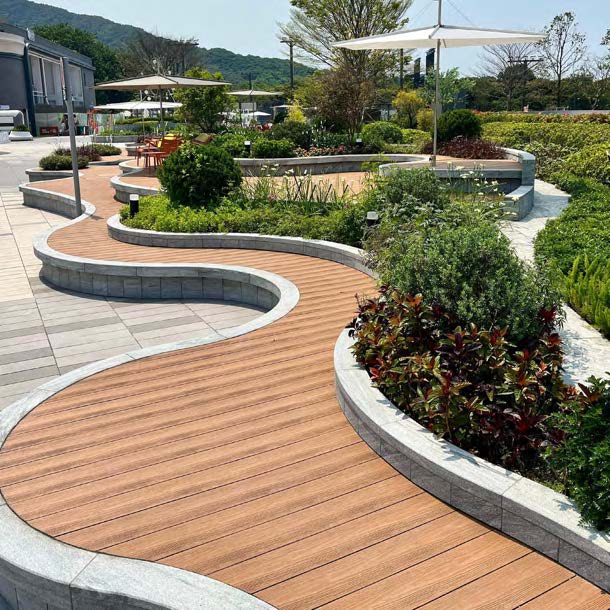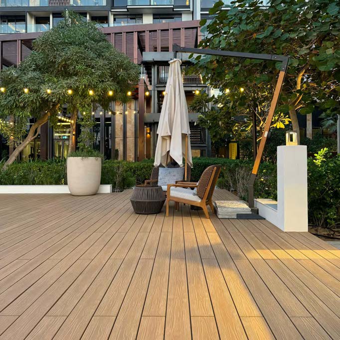 Soft, warm wood grain aesthetics optimized for decks, balconies, and resort pathways — achieving a balance between tactility and precision.